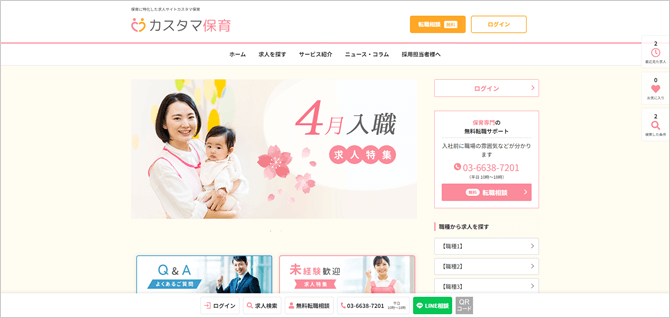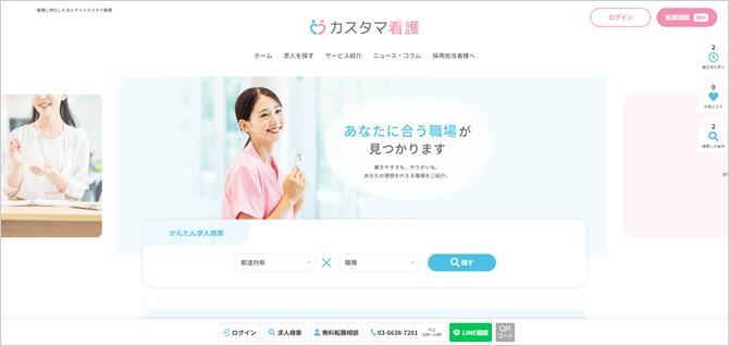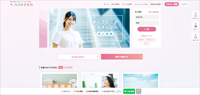 | 検索機能 | 地域検索/路線検索/条件検索(職種・雇用形態・業種・特徴・資格)/給与検索/フリーワード検索/同じ地域など回遊 | |||